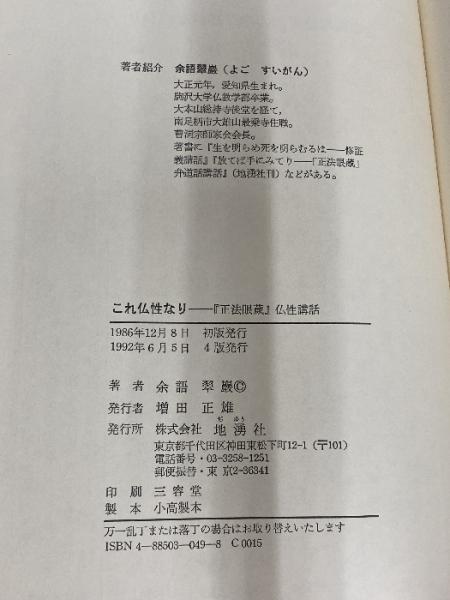 これ仏性なり―『正法眼蔵』仏性講話 地湧社 余語 翠巖