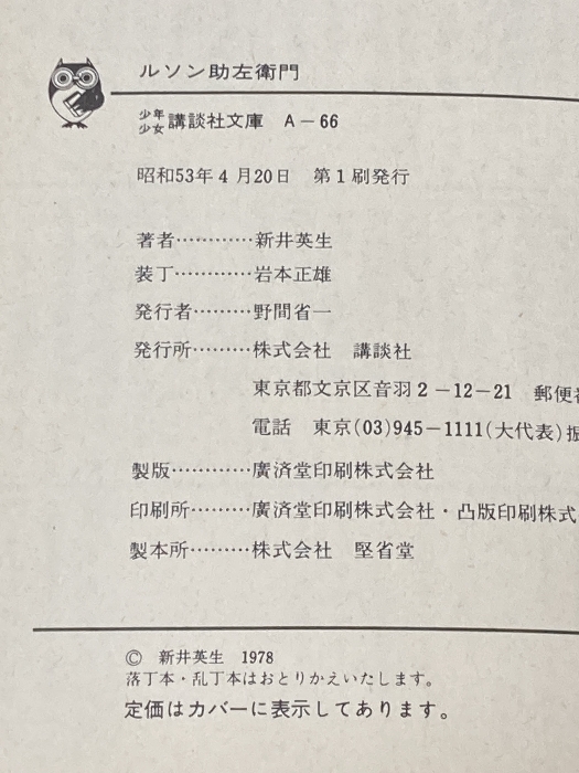 ※イタミ有 ルソン助左衛門―南海の風雲児 (1978年) (少年少女講談社文庫) 講談社 新井 英生