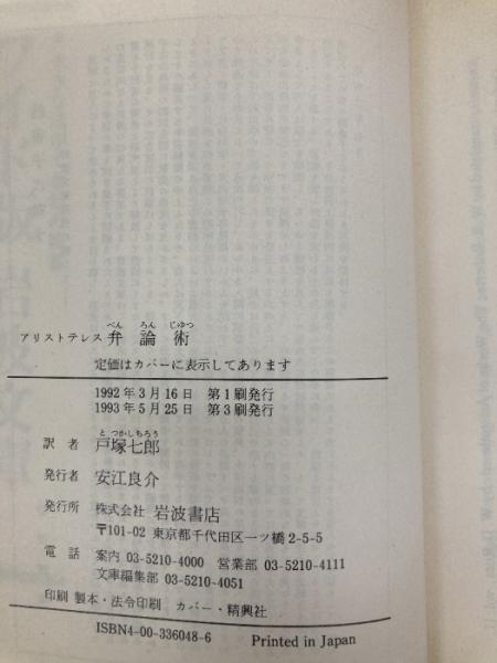 弁論術(アリストテレス) (岩波文庫 青 604-8) 岩波書店 アリストテレス