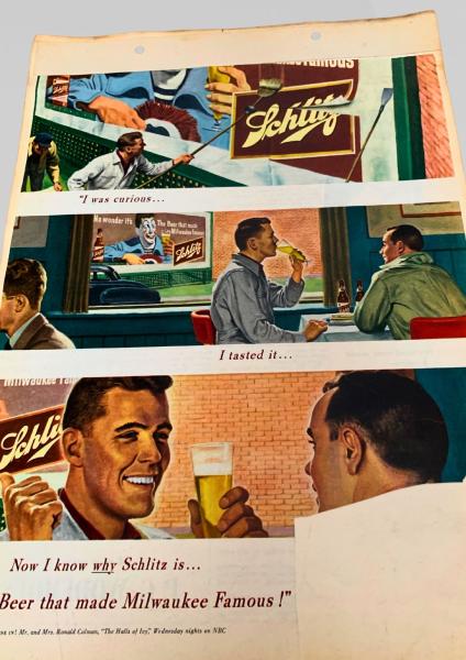 スクラップ資料(台紙貼り) Schlitz Brewing Company・ビール広告・飲み屋風
