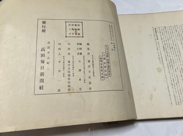 • 解説 表裏表紙共に欠 扉に印 表紙がないため本体の頁縁がスレて傷んでいる 三方金 地図2枚+本文+モノクロ写真図版270頁 昭和9年刊 38x25.5cmの横長判