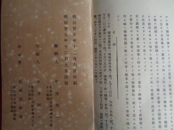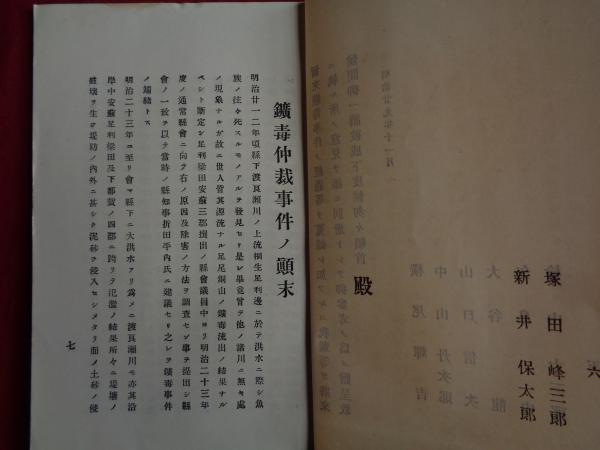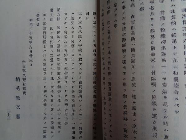 足尾銅山鉱毒事件仲裁意見書(中澤丙一編、明治29年)鉱毒仲裁事件ノ顛末、将来ニ対スル意見、契約書など