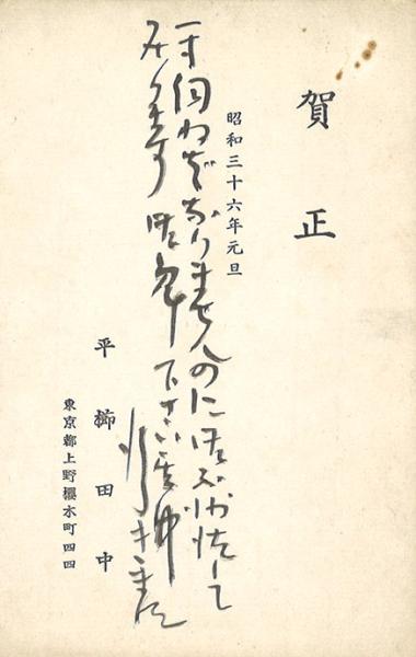 平櫛田中年賀葉書(毛筆3行加筆)