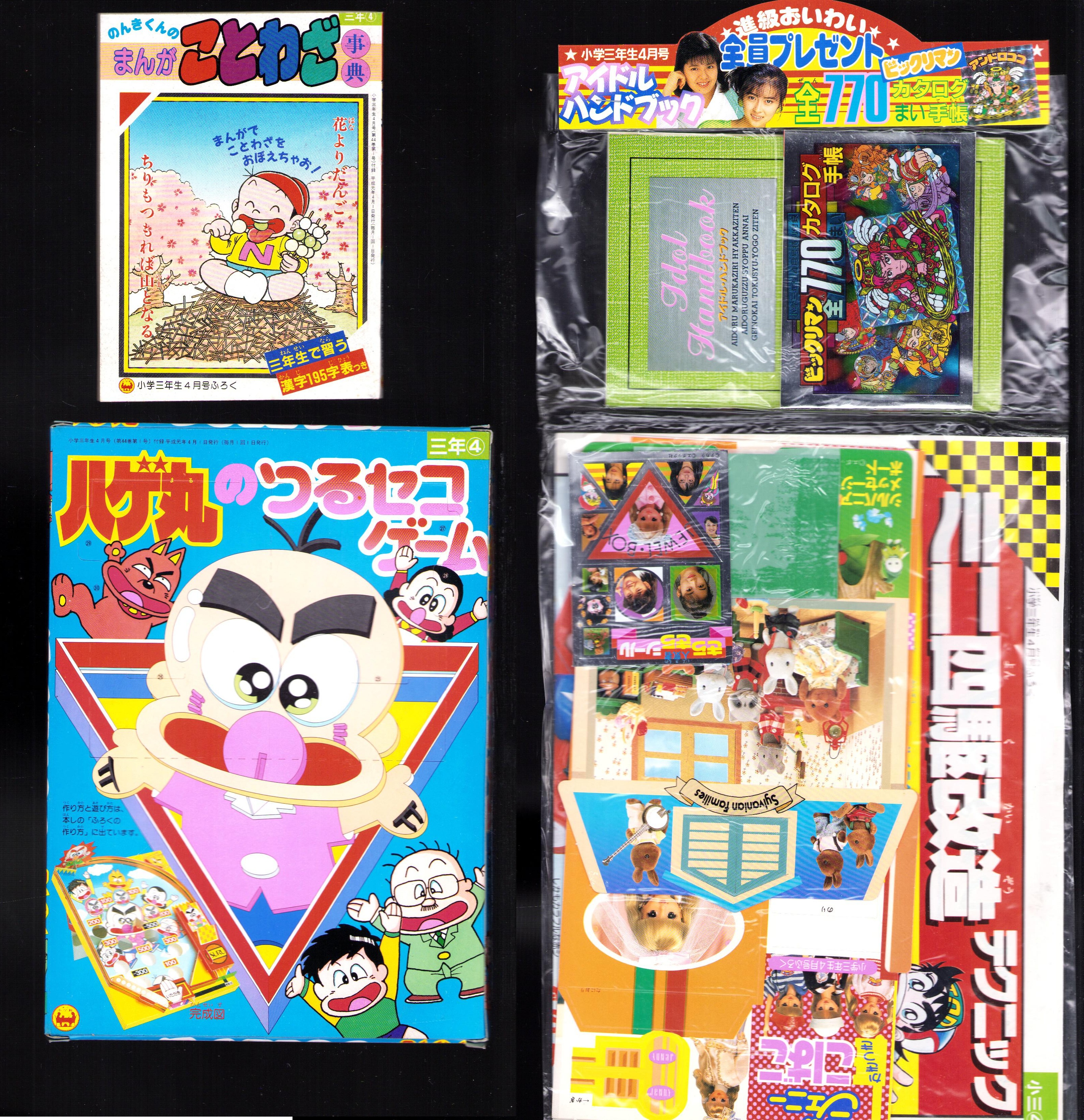(付録)ハゲ丸のつるセコゲーム/ミニ四駆改造テクニック/ジェニーかぎつきこばこ他 全8点揃 -小学三年生平成1年4月号付録-