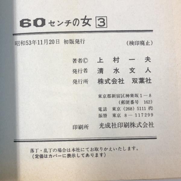 初版 60センチの女 3 アクションコミックス 双葉社 上村一夫