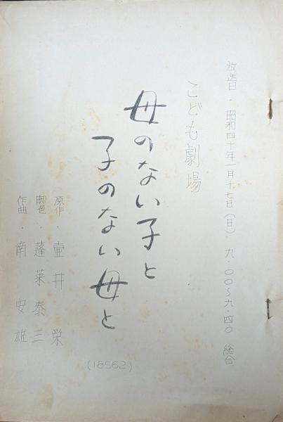 • 解説 こども劇場「母のないこと子のない母と」の台本です。