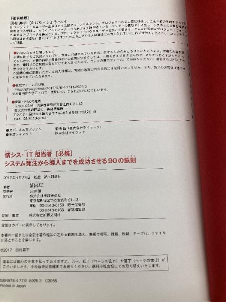 【※カバー無し】情シス・IT担当者[必携] システム発注から導入までを成功させる90の鉄則 技術評論社 田村 昇平