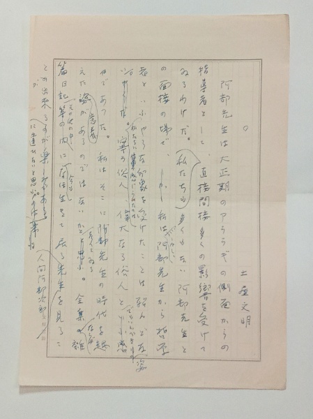 土屋文明草稿「阿部次郎全集推薦の言葉」