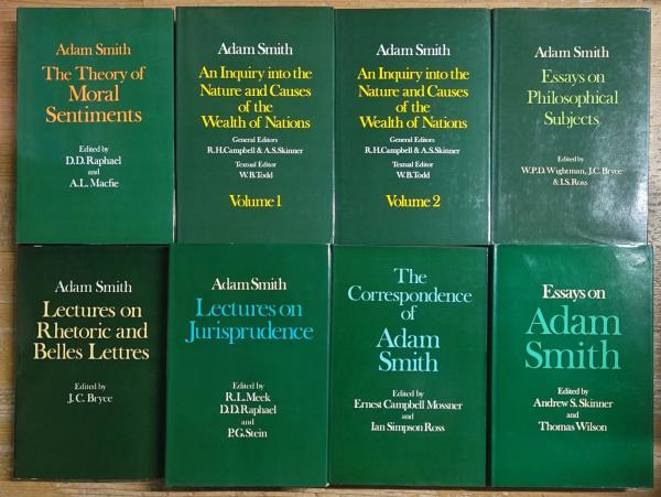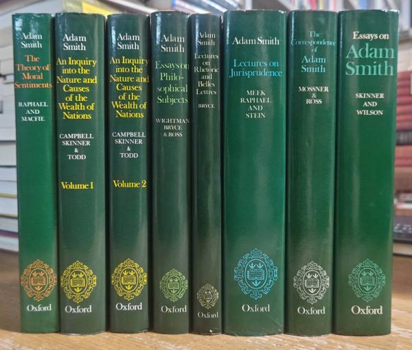 THE GLASGOW EDITION OF THE WORKS AND CORRESPONDENCE OF ADAM SMITH. Complete set of 7 volumes + Essays on Adam Smith.
