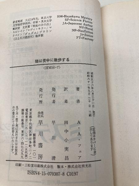 猫は夜中に散歩する (ハヤカワ・ミステリ文庫 4-7) 早川書房 A.A.フェア