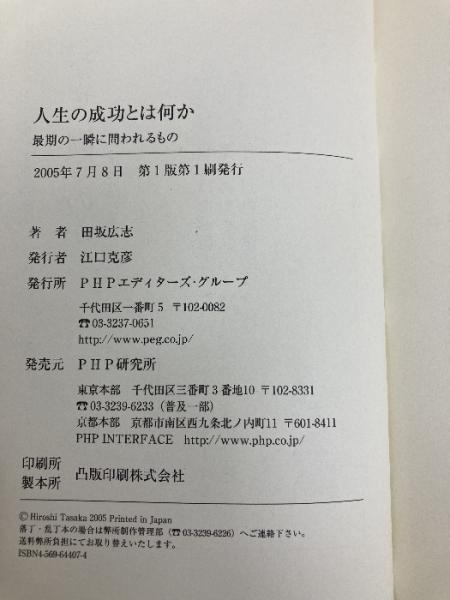 人生の成功とは何か 最期の一瞬に問われるもの PHP研究所 田坂 広志