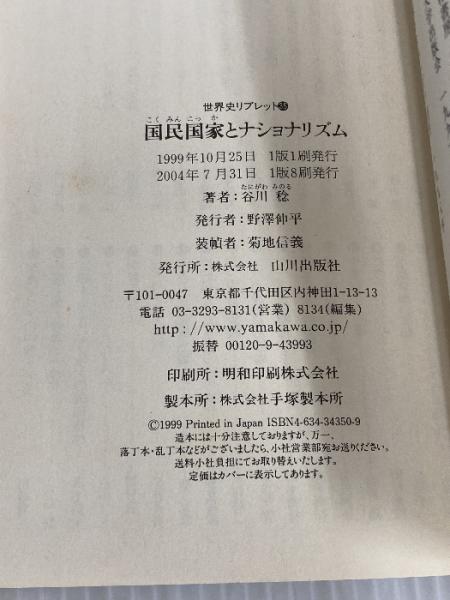 国民国家とナショナリズム (世界史リブレット 35) 山川出版社 谷川 稔