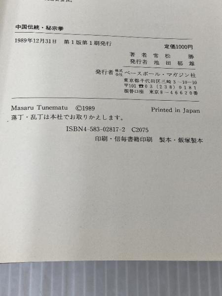 中国伝統・秘宗拳 ベースボール・マガジン社 常松 勝