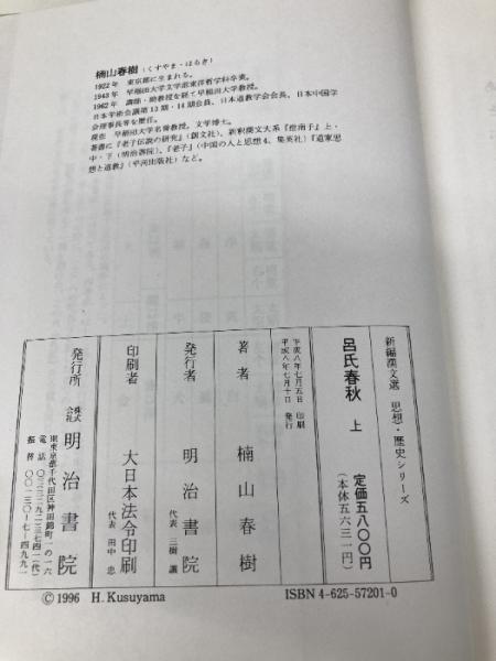 呂氏春秋 上 (新編漢文選 思想・歴史シリーズ) 明治書院 楠山 春樹