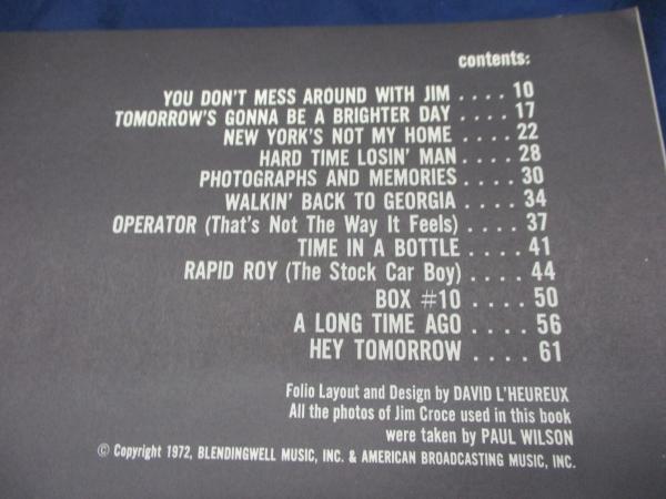 洋書/スコア/ジム・クロウチ/ジムに手を出すな/JIM CROCE