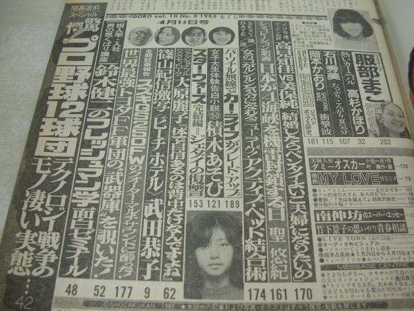GORO NO.8 ゴロー 1983年04月14日号 河合奈保子 表紙+3折ピンナップ 武田恭子 高杉かほり 大原麗子(記事) 高見知佳+美保純(対談記事) 石川秀美 岡本かおり 服部まこ ルーフィンチャウ