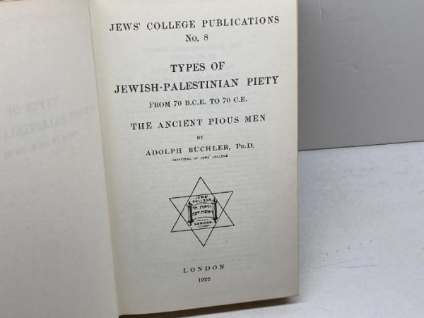 洋書 Types of Jewish Palestinian Piety from 70 B.C.E. to 70 C.E Büchler アドルフ・ビューヒラー 1969復刻版 Gregg International Publishers