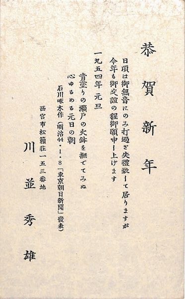 川並秀雄葉書(印刷/年賀)