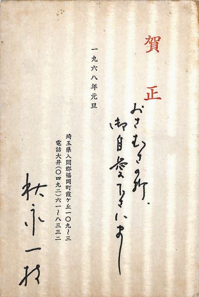 秋永一枝葉書(印刷・ペン/年賀)