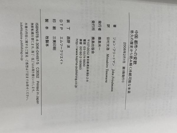 中国 都市への変貌 : 悠久の歴史から読み解く持続可能な未来 鹿島出版会 ジョン フリードマン