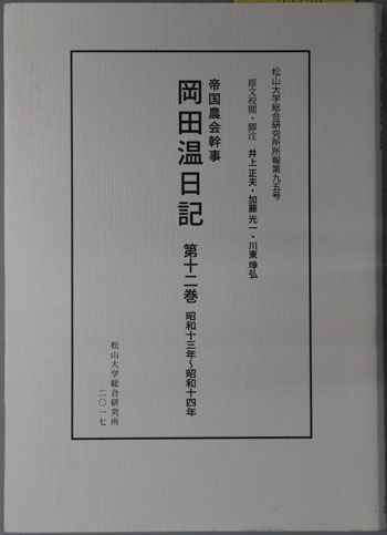 帝国農会幹事岡田温日記(農業技師) 松山大学総合研究所所報 第95号 第12巻:昭和13年~昭和14年