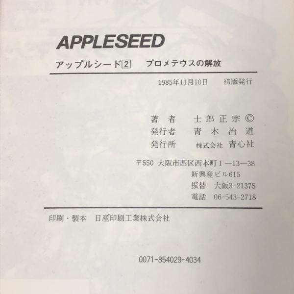 初版 アップルシード 2 プロメテウスの解放 APPLESEED COMIC BORNE 青心社 士郎正宗