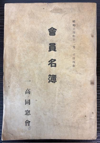 一高同窓会会員名簿 昭和14年度