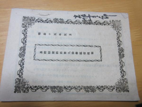 長野縣埴科郡第九番區會則 則 明治十五年五月 B6版6頁 / 埴科郡會議事細則 明治14年 B4年 B6版13頁 / 埴科郡東紹山孫村々會義事細則 明治十三年十二月 B6版20頁 /  埴科郡屋代町・栗佐村・雨宮村・倉科村・土口村・森村・共有澤山之内字芝平争訴弐之公判 B6版34頁 明治13年3月 /  埴科郡東飯山村會則 B612頁 / 乙第七拾三号 小学校に関する記述 明治15年6月 B6版30頁 /  埴科郡鏷物師屋村 村会議事細則 明治17年B6版12頁 / 埴科郡船松山村會事細則 明治13年12月 B6版6冊紐綴 合計8点