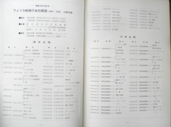 グラシン紙かけ 建国200年記念/アメリカ映画の史的展望〈1894-1936〉(1) ごあいさつ アメリカ映画第1期の黄金時代/南部圭之助 わが心のアメリカ映画 ぼくは〈イントランス〉に感激した/飯島正 錦輝館で見たアメリカ映画/田中純一郎 ああわが心のアメリカ映画/淀川長治 「極北のナヌーク」との出逢い/川喜多かしこ 上映作品解説/丸尾定 他