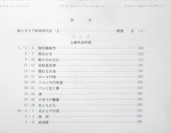 グラシン紙かけ イタリア映画の特集(1) 新イタリア映画年代記(上)/飯島正 上映作品解説/無防備都市 靴みがき 戦火のかなた 自転車泥棒 揺れる大地 ローマ11時 2ペンスの希望 パンと恋と夢 道 ナポリの饗宴 女ともだち カビリアの夜 屋根 鉄道員
