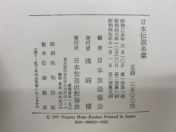 日本伝説名彙 第二版第五刷