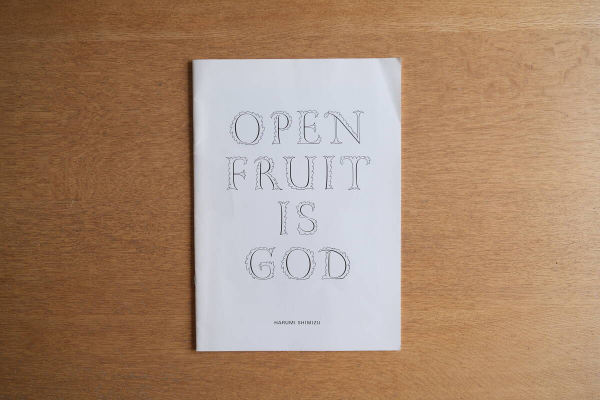 • 解説 清水はるみによる写真集。2015年に発表された個展「OPEN FRUIT IS GOD」に関連して制作された作品集で、写真表現を通じて身体性や感覚的イメージを探求している。本書は限定200部で刊行され、YVON LAMBERTより出版された。
