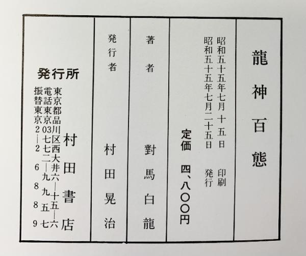 【図録】龍神百態 村田書店(東京都)對馬白龍 昭和55年