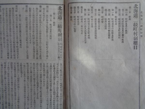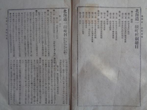 北海道一級町村制、北海道二級町村制 2冊(明治30年、「北海道毎日新聞」附録)町村区域、町村民の権利義務、町村行政、町村会、町村の財務、ほか