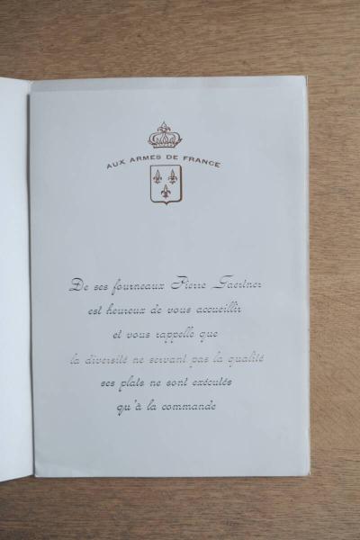 Aux Armes de France ヴィンテージ メニュー表