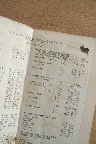 Restaurant Hongrois(Citadella étterem)ヴィンテージ メニュー表