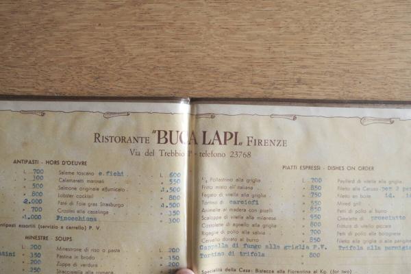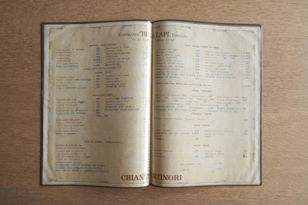 Ristorante BUCA LAPI ヴィンテージ メニュー表