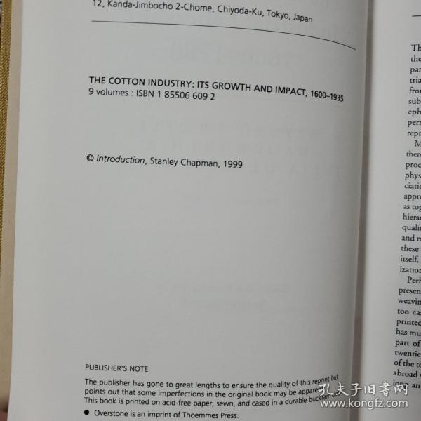 The Cotton Industry: Its Growth and Impact, 1600-1935 全9冊揃 綿花産業:その成長と影響、1600-1935年