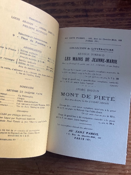 【シュールレアリスム雑誌復刻版】リテラチュール Litterature ファクシミリ版 ルイ・アラゴン、ブルトン、スーポー他編 全13号合本2冊