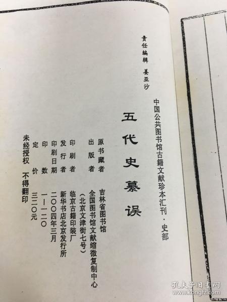 五代史纂誤:中国公共図書館古籍文献珍本匯刊.史部