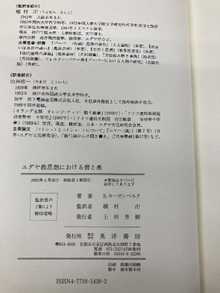 ユダヤ教思想における善と悪 晃洋書房 シャローム ローゼンベルク
