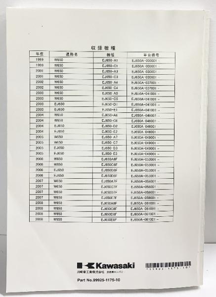 『カワサキ』KawasakiW650 サービスマニュアル 1999-2008 W650 川崎重工業株式会社 PartNo.99925-1175-10