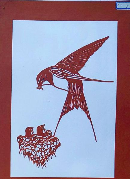 • 解説 f240405005〇伊勢型紙 手彫り ツバメ ヒナ 巣 アート 伝統和紙工芸 貼り絵 切り絵 昭和レトロ インテリア〇和本古書古文書