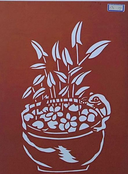 f240405007〇伊勢型紙 手彫り 百合 鉢植え アート 伝統和紙工芸 貼り絵 切り絵 昭和レトロ インテリア〇和本古書古文書