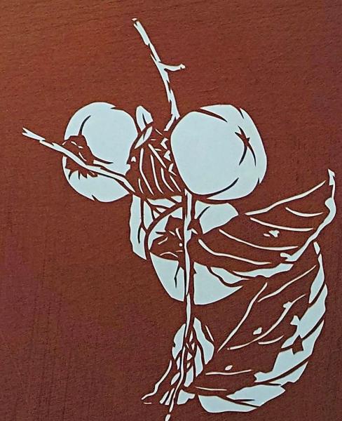 • 解説 f240405011〇伊勢型紙 手彫り 柿 秋の風物詩 アート 伝統和紙工芸 貼り絵 切り絵 昭和レトロ インテリア〇和本古書古文書