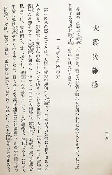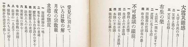 物質的生活と精神的生活の均衡、無我・他力信仰、迷信と正信の区別などを主題とし、関東大震災後の社会的混乱や人間の弱さにも真摯に向き合う。