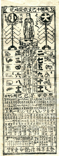 天保十已亥歳筮略記 としとく大善神 <一枚刷地方暦>