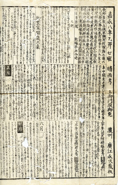 嘉永八年乙卯七曜 晴雨考  <一枚刷>