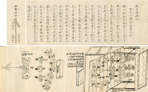 太子内伝記 匠工三国流通伝取意  <釿始・柱立・上棟次第等精写 図入 18㌢×7㍍>
