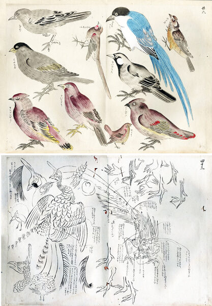 鳥類写生譜 江戸末期から明治期の画家 <折帖仕立 彩色精写 約270種>